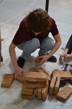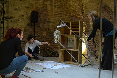 Participating artist Athina Kampouri working with her group on their installation. Byzantine Bath Thessaloniki (2019)
