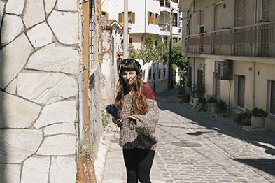 Eleni Kehagia recording the soundscape of Ano Poli. Byzantine Bath Thessaloniki (2019)