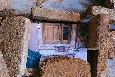 Detail from art installation by Athina Kampouri, Marios-Leandros Mpasteas, Vasiliki Oikonomopoulou-Papachronopoulou, Sofia Piperidou, Byzantine Bath Thessaloniki (2019), Image by Nikos Kostopoulos